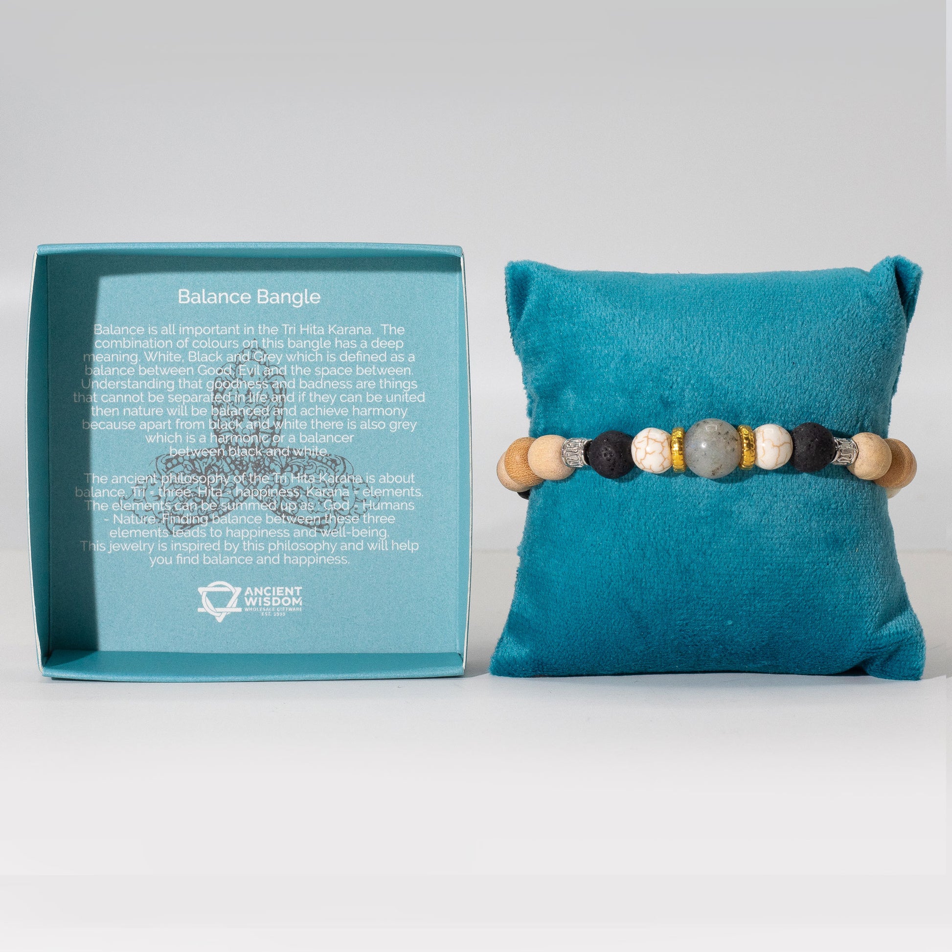 El equilibrio es fundamental en Tri Hita Karana. La combinación de colores en esta pulsera tiene un significado profundo. Blanco, negro y gris, que se definen como el equilibrio entre el bien, el mal y el espacio intermedio.