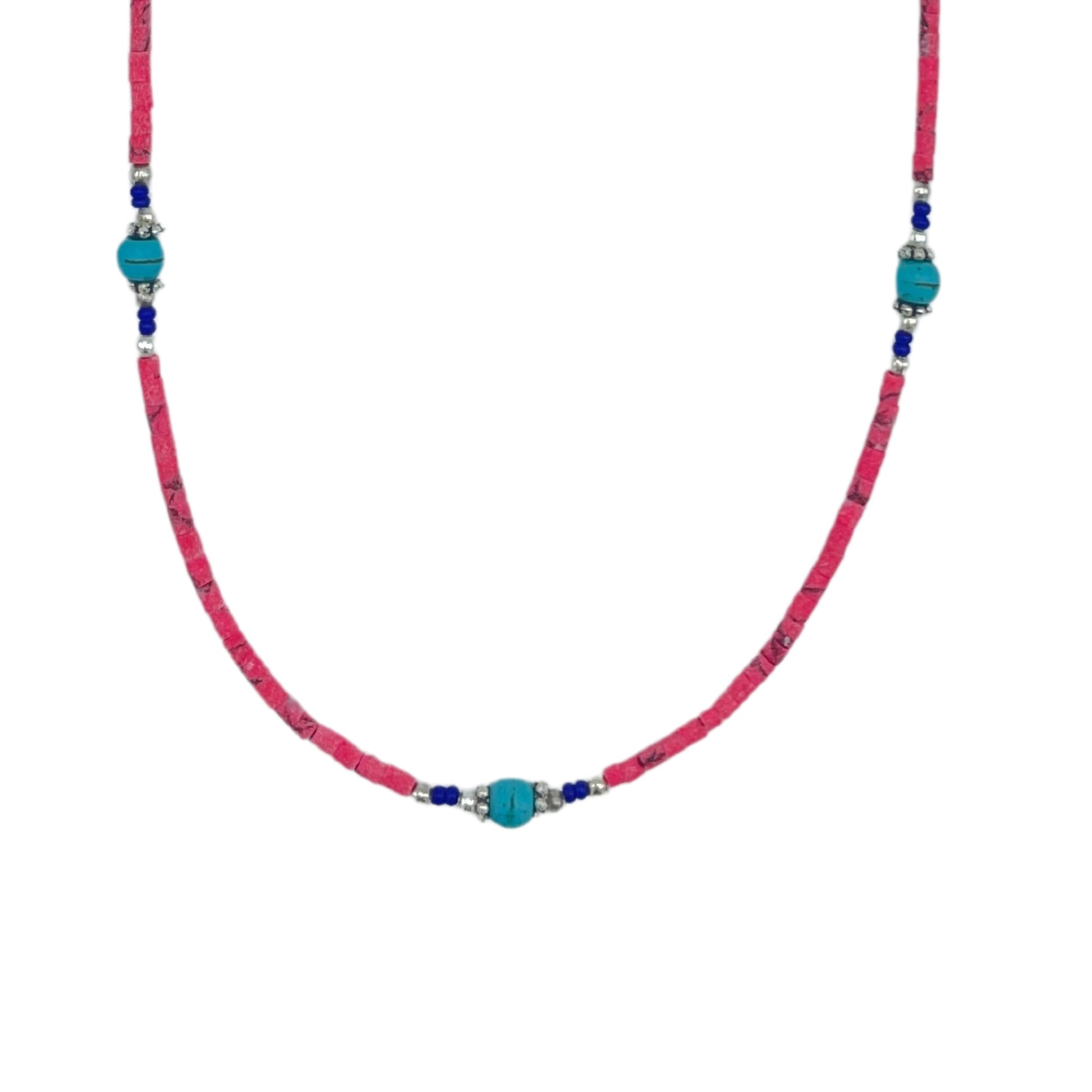 Collar nepalí de gemas extrafinas - cuentas de coral rosa y turquesa