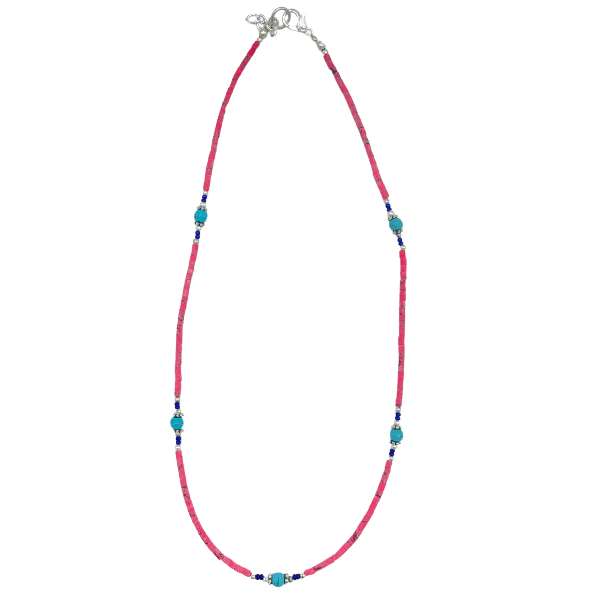Cada cuenta de coral rosa y turquesa ha sido seleccionada cuidadosamente para ofrecerte una pieza que combina tradición y sofisticación.