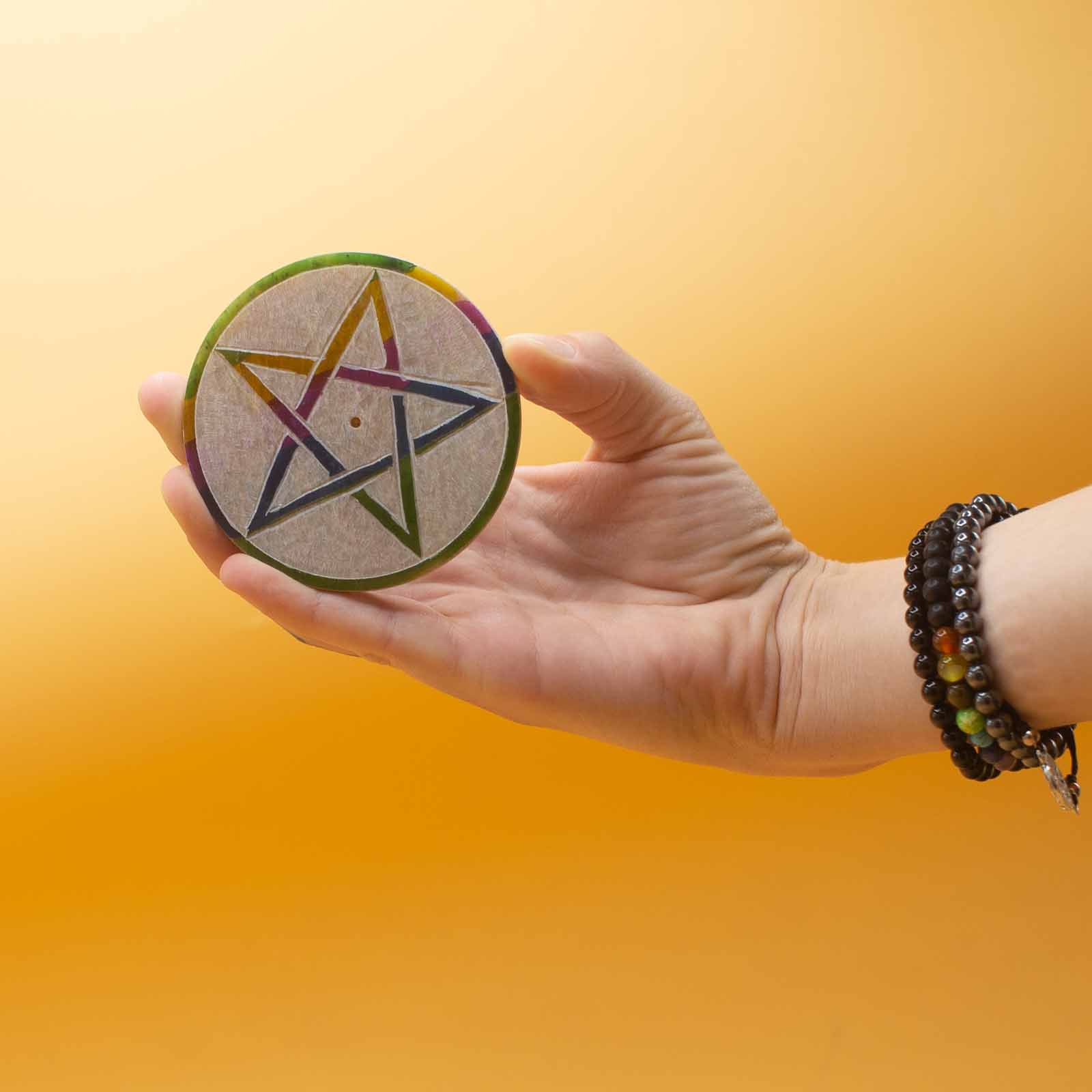 Porta Incienso en Disco de Esteatita 8cm - Pentágono